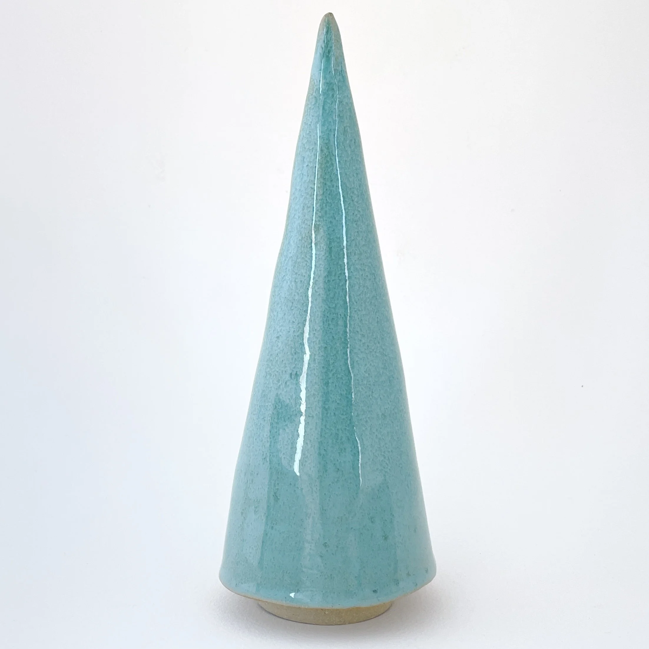 A quietly sculptural ceramic tree, shaped by hand and finished with a soft, minty-green gloss glaze. Each piece carries subtle variations in form and surface—small shifts that reveal the touch of the maker and lend every tree its own character.