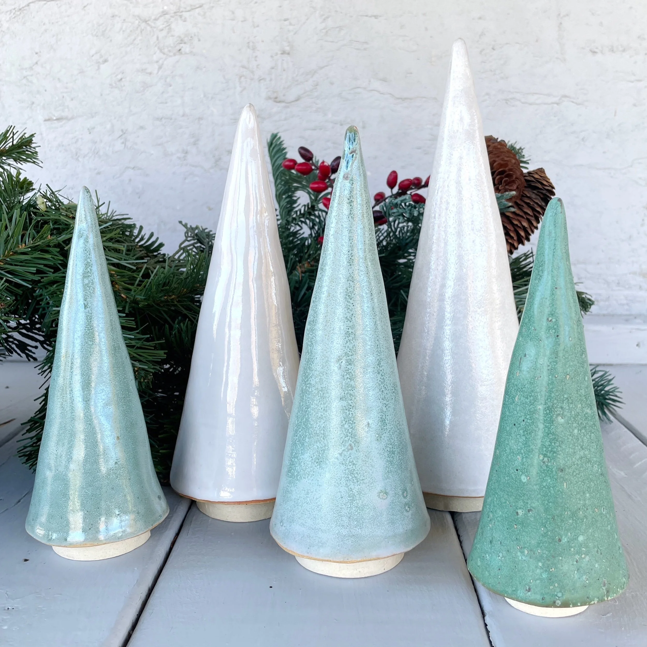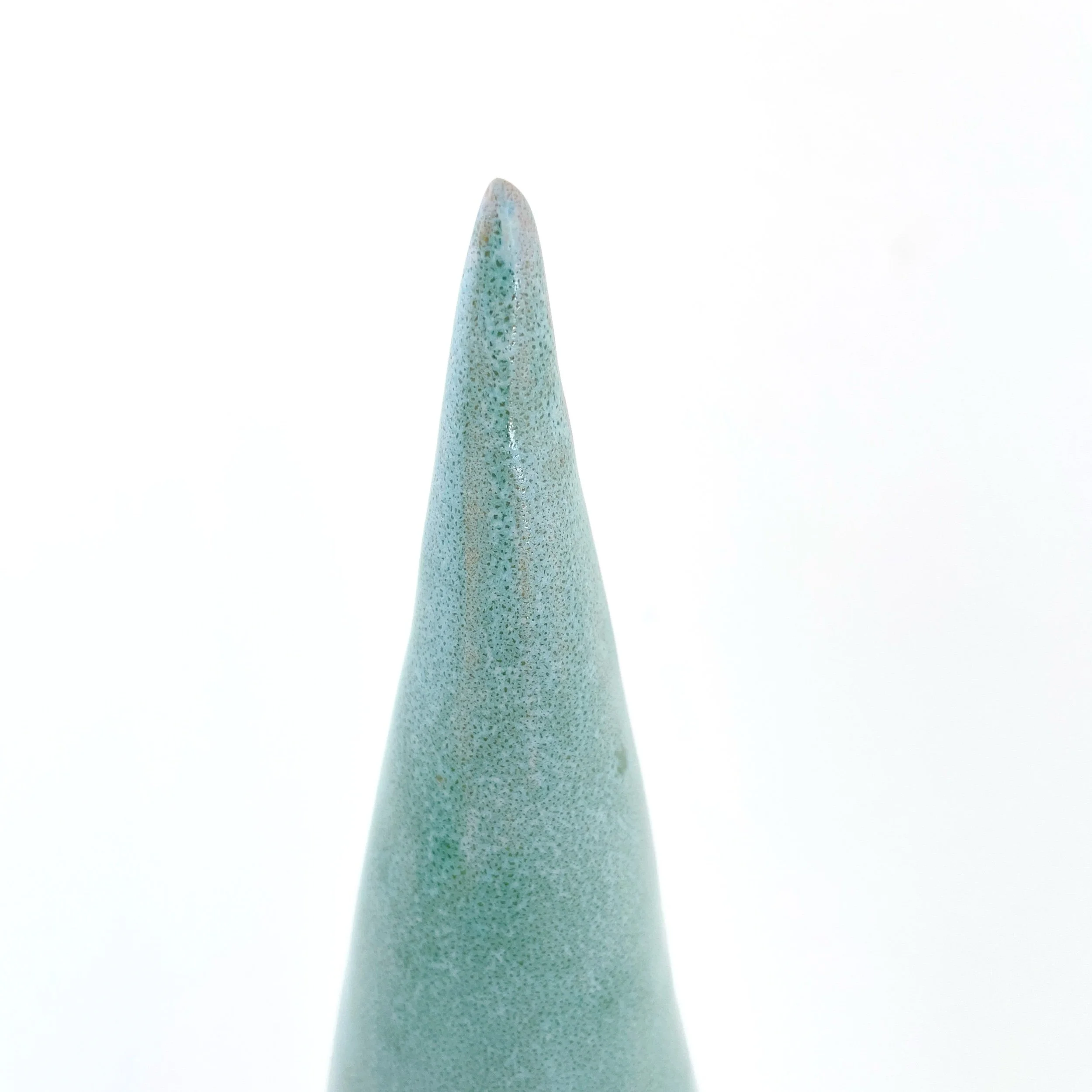 A quietly sculptural ceramic tree, shaped by hand and finished with a soft, minty-green satin glaze. Each piece carries subtle variations in form and surface—small shifts that reveal the touch of the maker and lend every tree its own character.