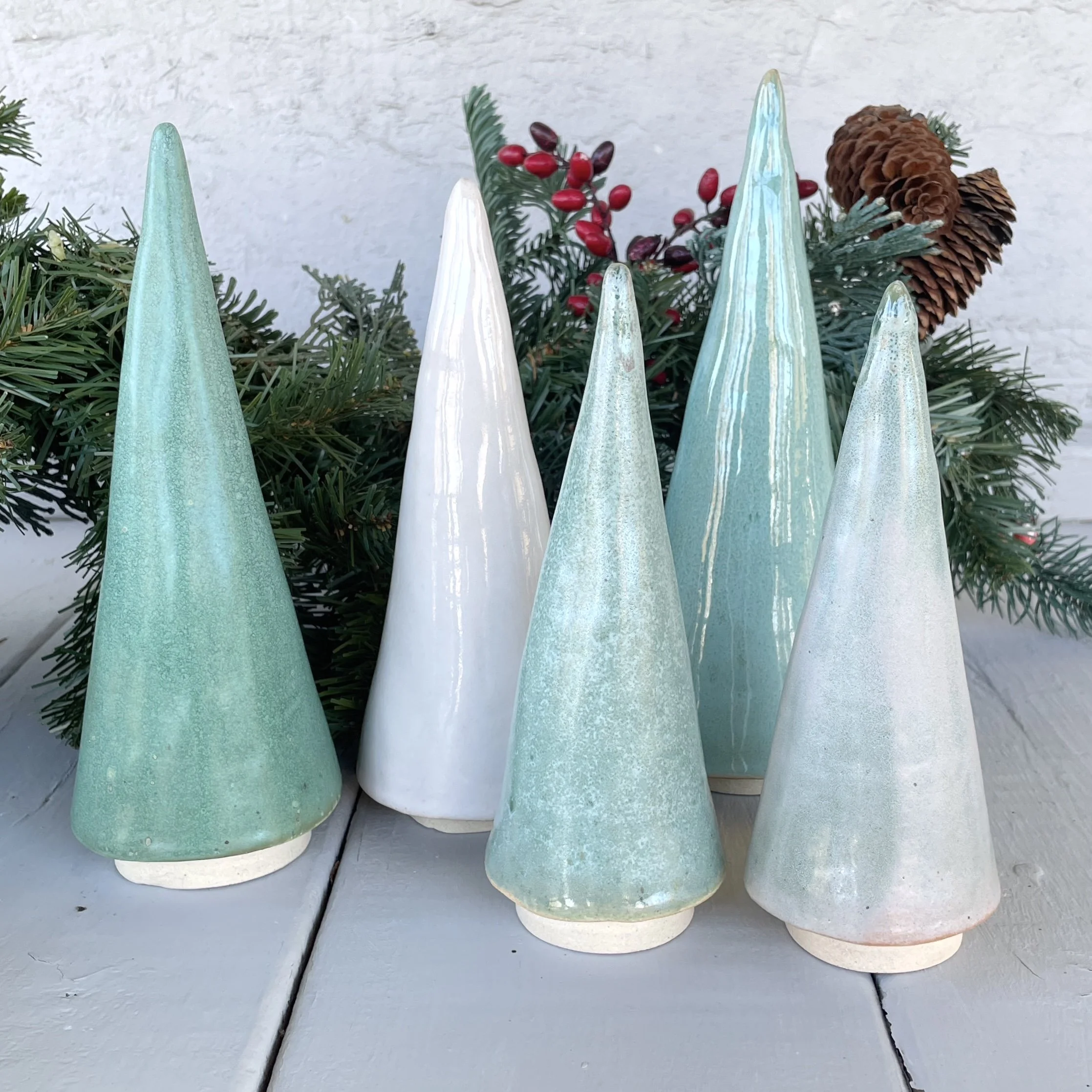 Minimal and modern, these trees stand beautifully on their own or arranged in a small grove. They bring a gentle, wintry presence to shelves, mantels, and tabletop displays throughout the season and beyond.