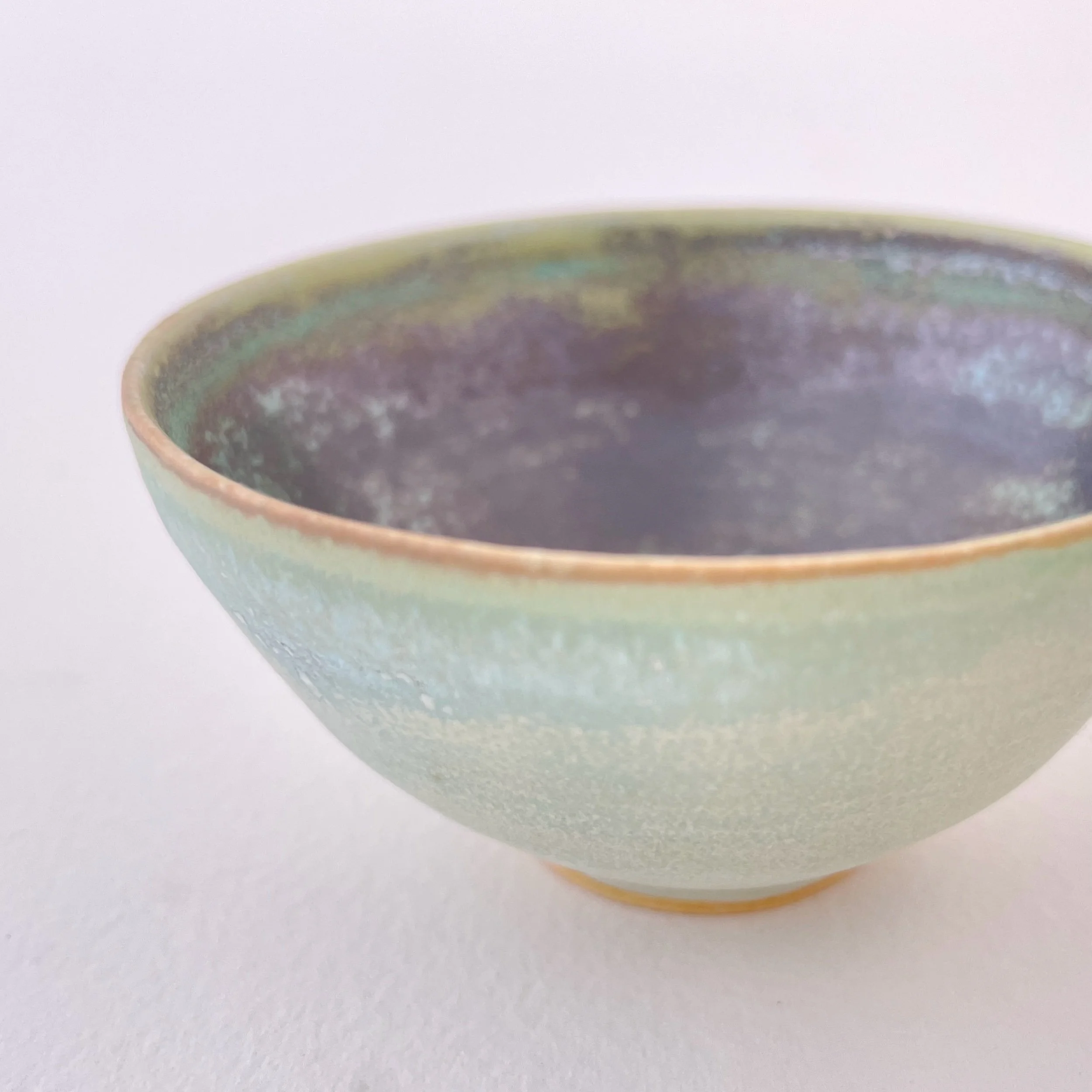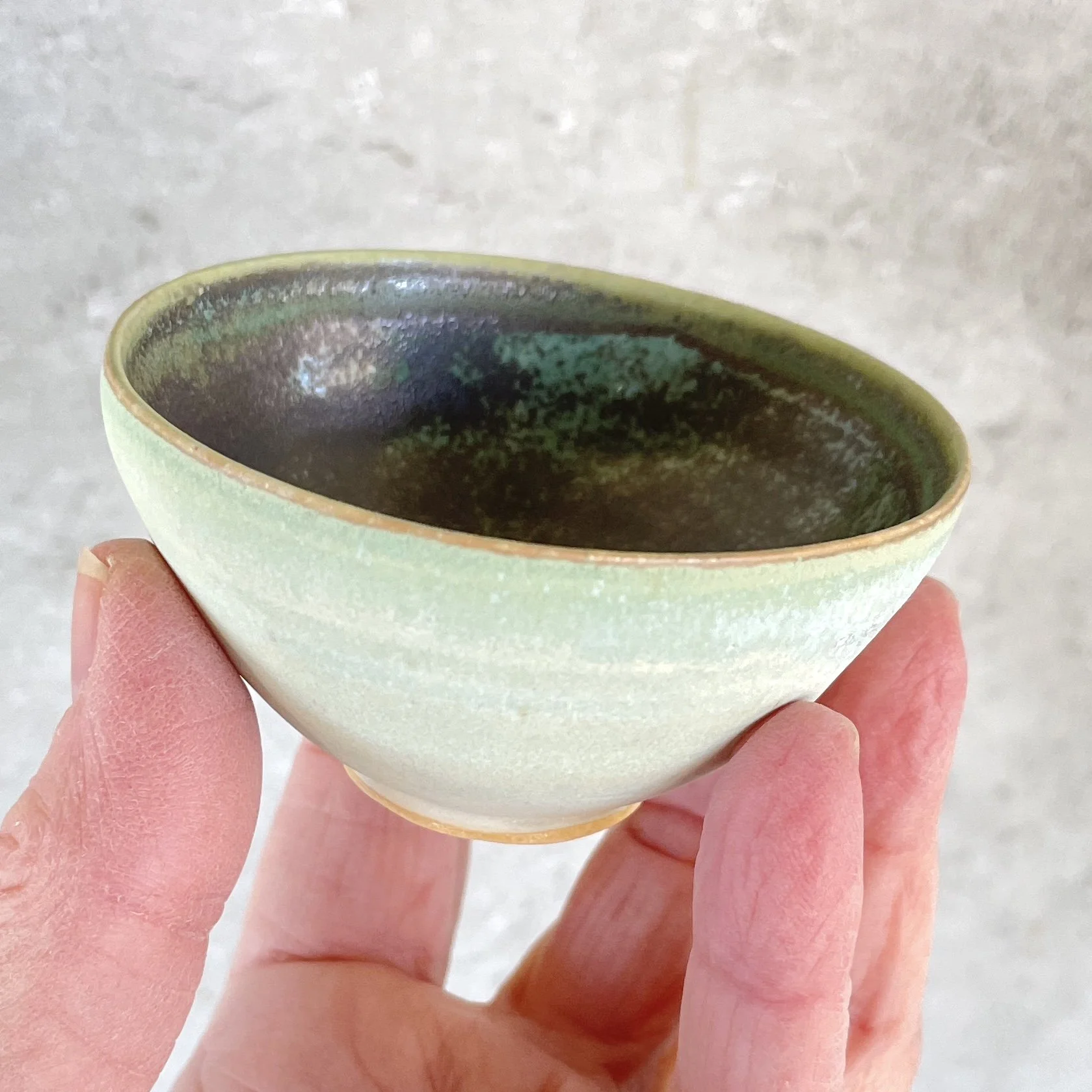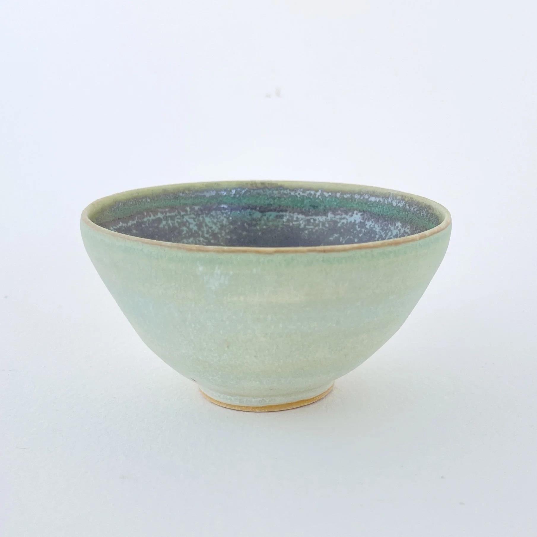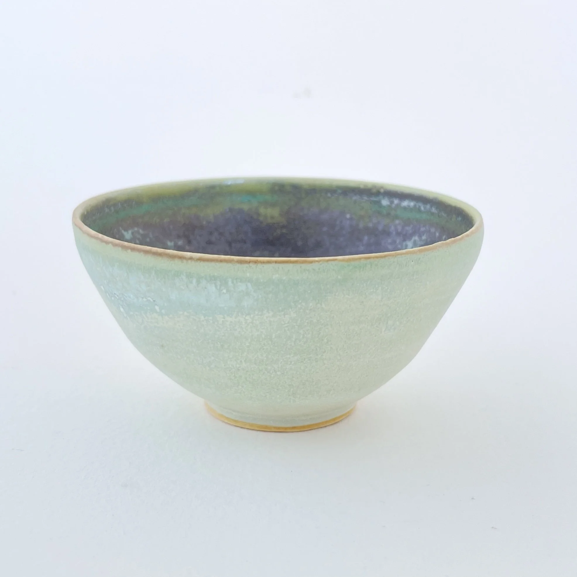 From the Small Essentials series — a collection of quiet, functional objects for everyday rituals. This small bowl is finished in a soft, matte exterior glaze that feels like ultra-fine sand—subtle, tactile, and calming in the hand. The outside shifts gently from pale celadon to a muted, misty green, with a quiet gradient that emphasizes the bowl’s simple, open form.