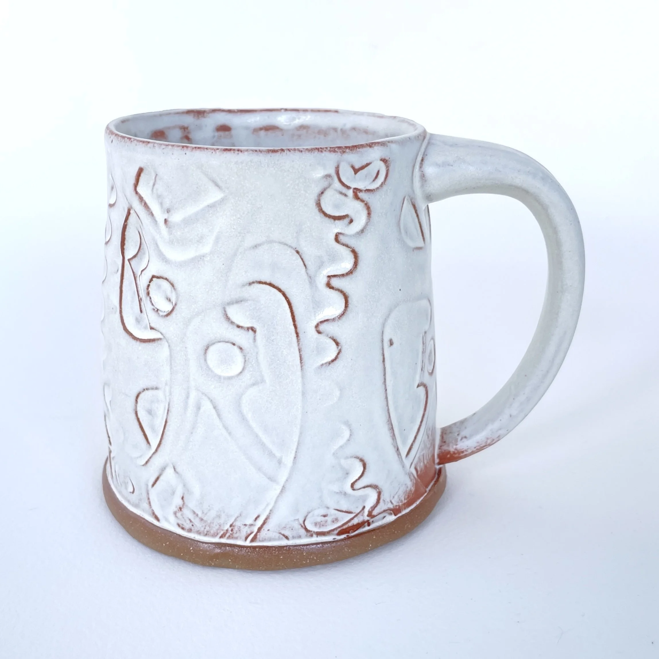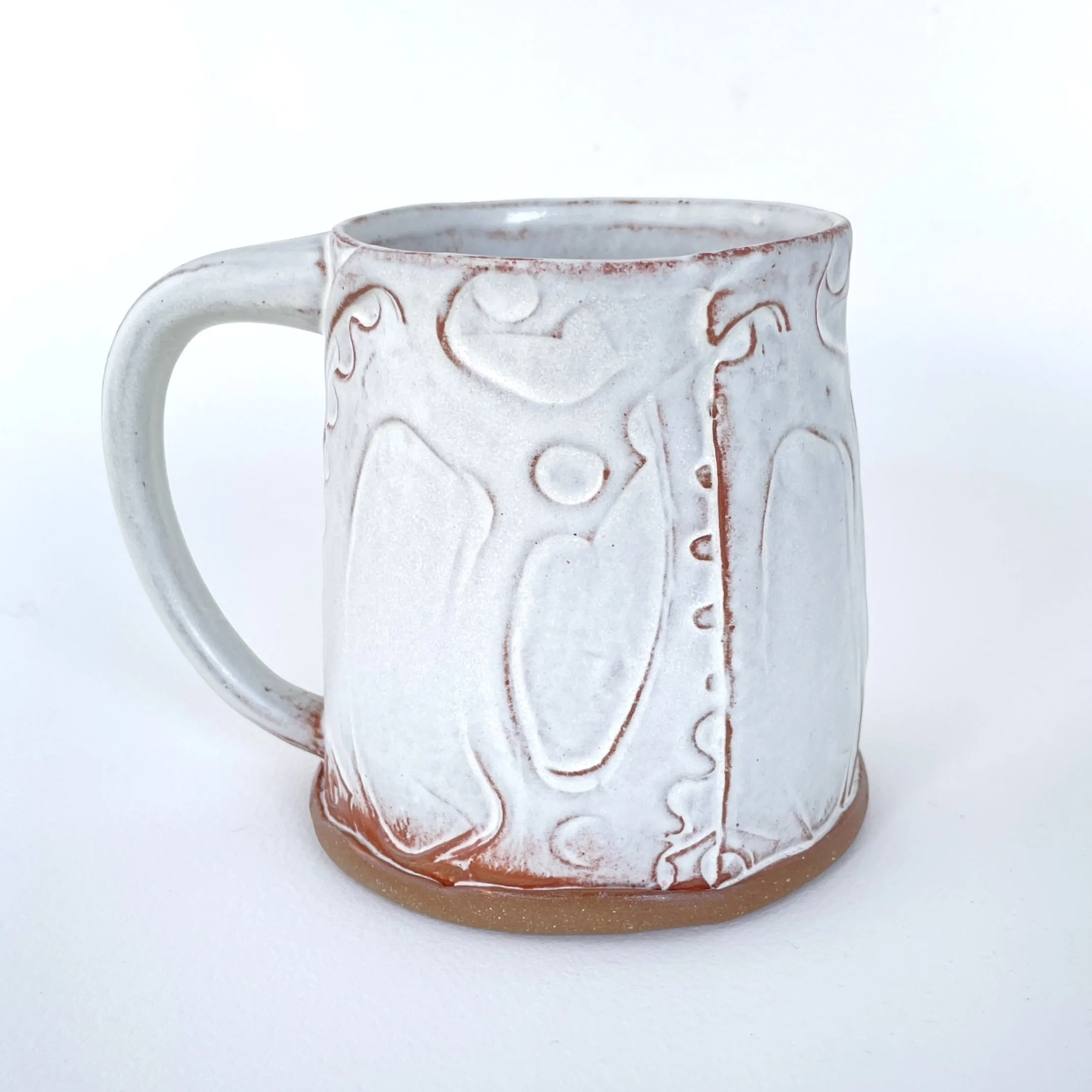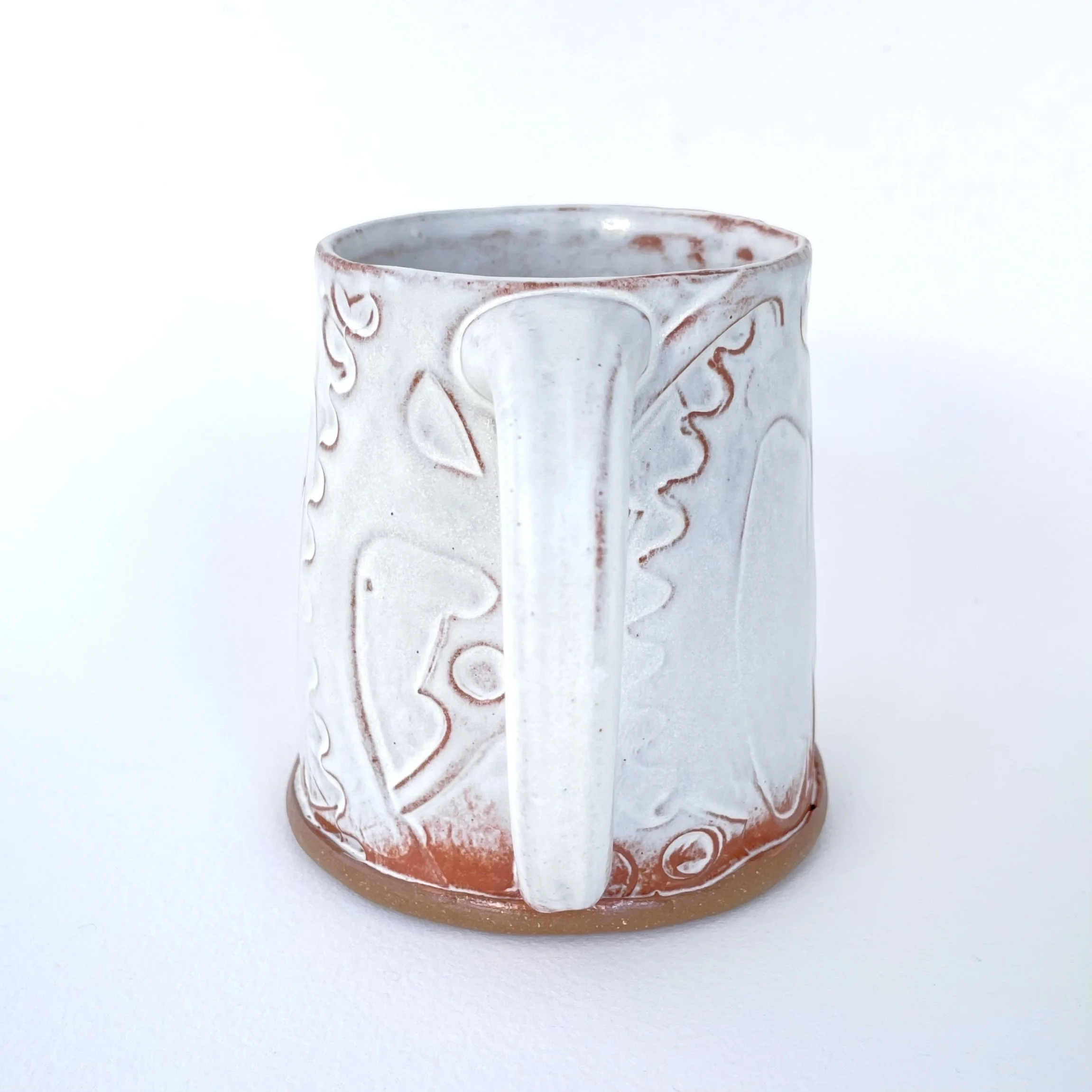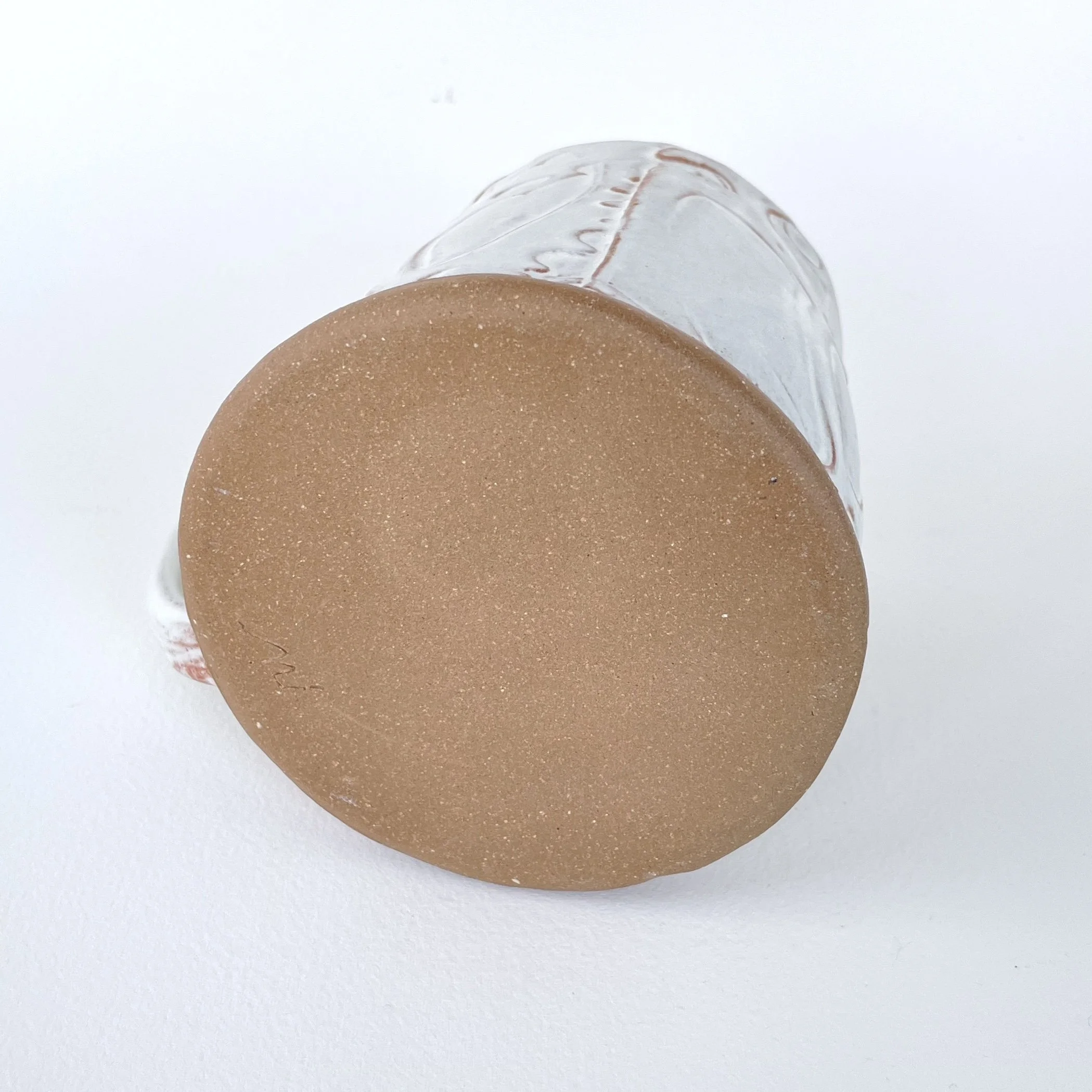 Material: Mid-fire red stoneware, matte white glaze
