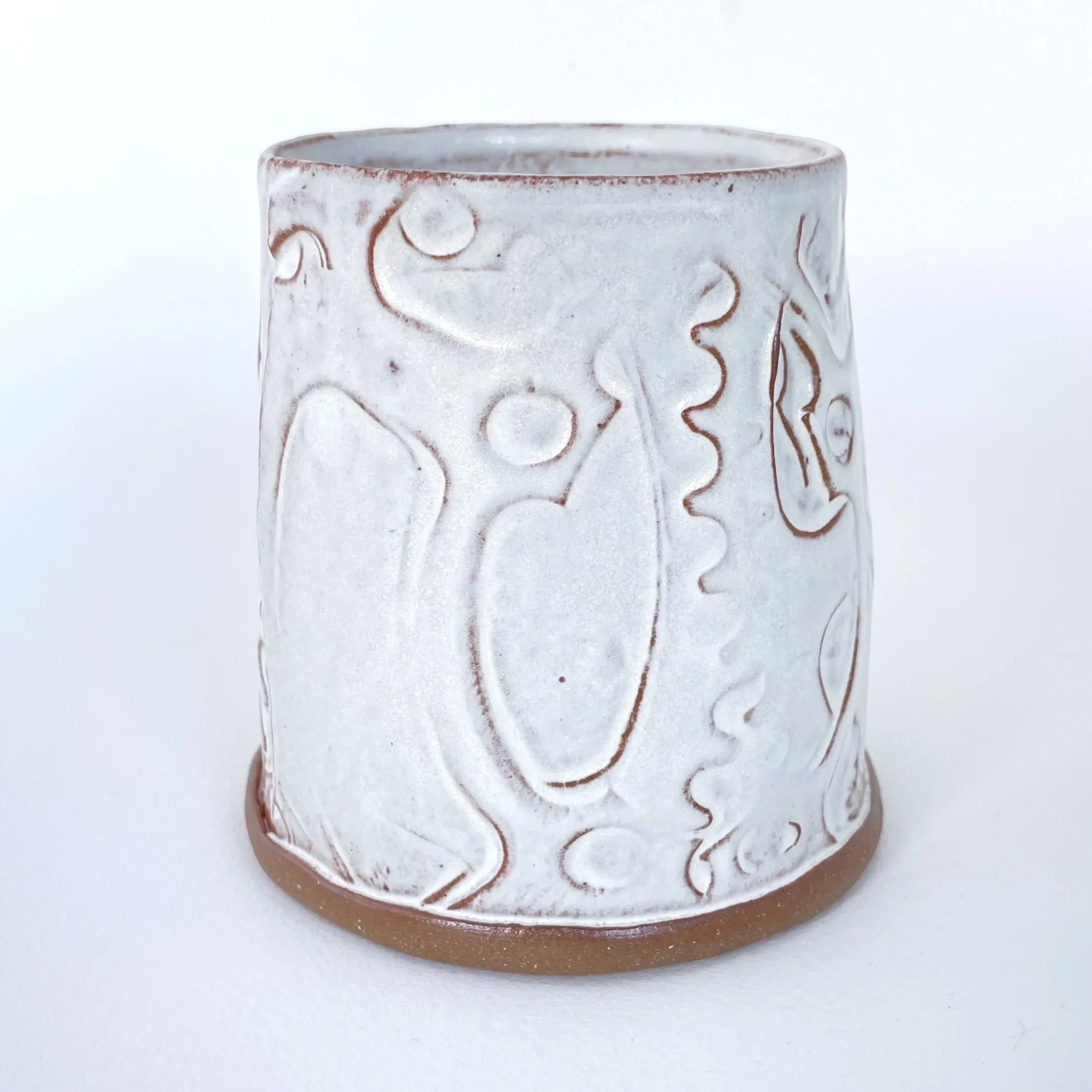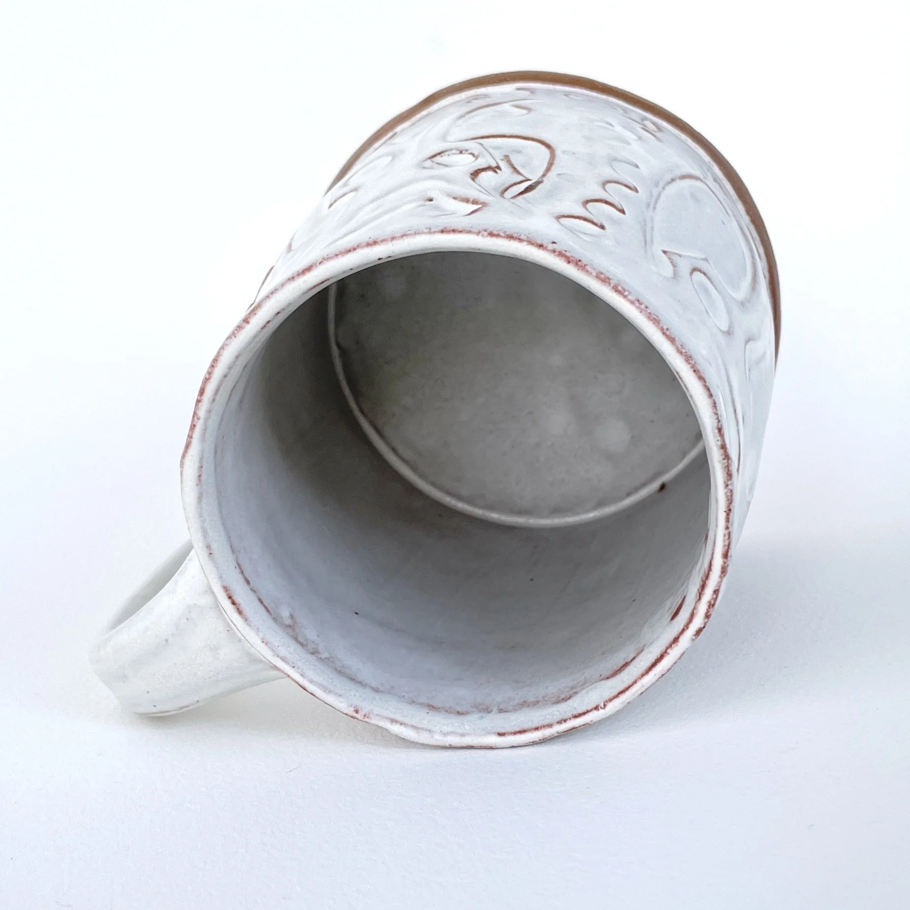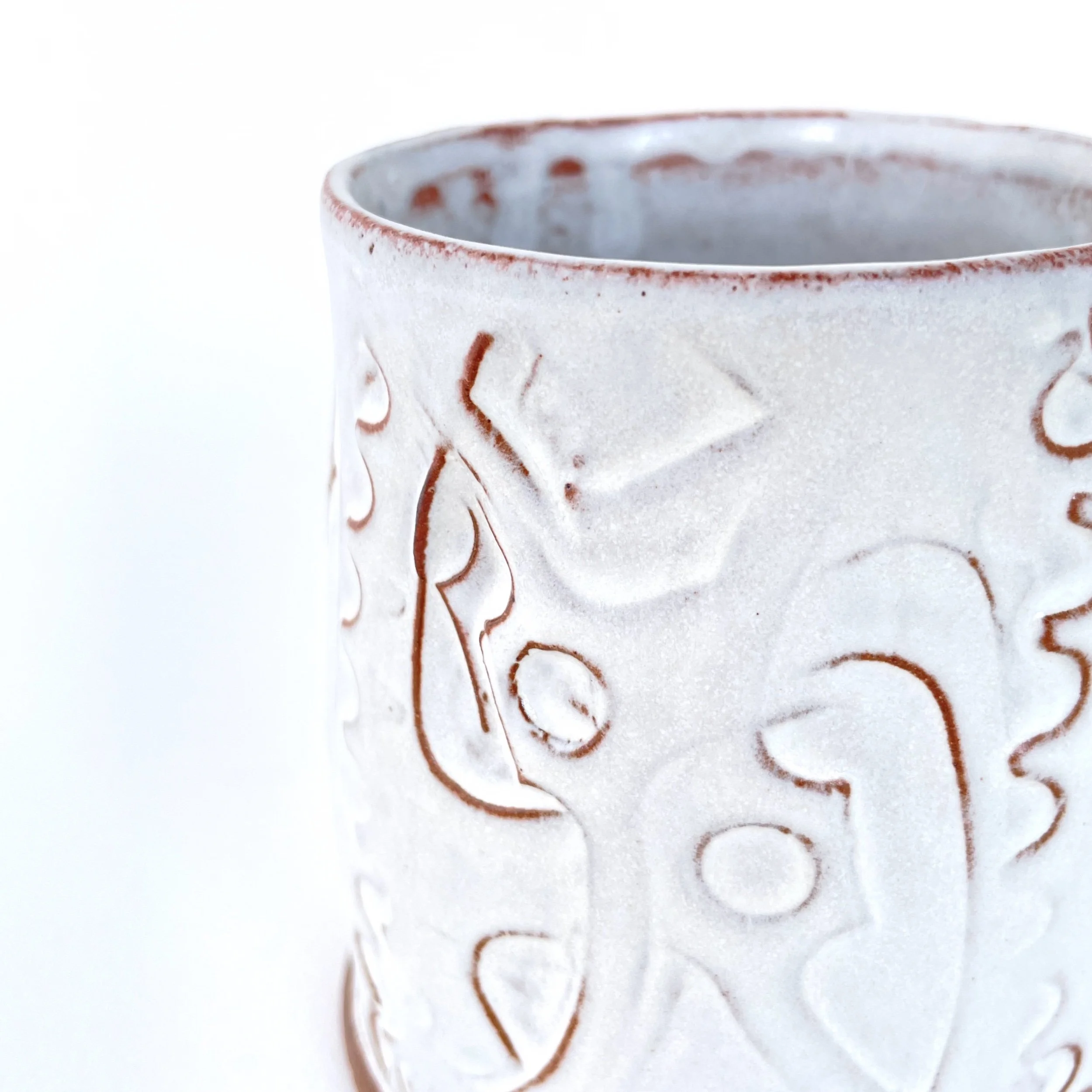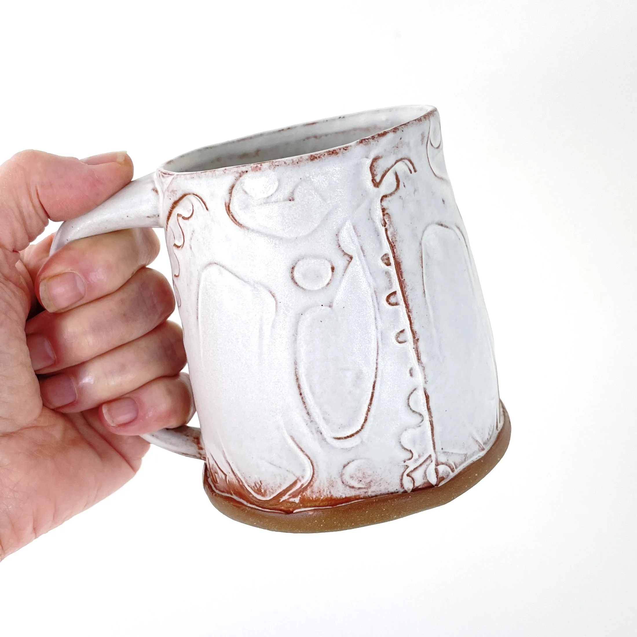 Material: Mid-fire red stoneware, matte white glaze